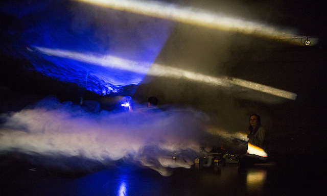 The narrative is a sensation curve generated by music that receives voices, recorded or live for the conduction. Light and music as an autonomous language building immersive environments that shift the way we look at what we understand as reality. The stimulation of the imagination as the main conductor of this dramaturgy.