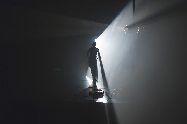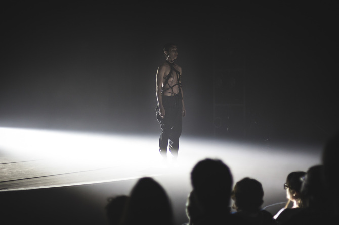 A scripted choreography outlines a musical score of sensations that concludes in the spectator and makes him/her the central character of this plot. The onstage body is constantly altered by external and internal stimuli; the soundtrack is felt in the body of the spectator and the light reveals the image of our unconscious mind, a perception that locates the space between what’s real and imaginary, between the conscious and the unconscious minds.